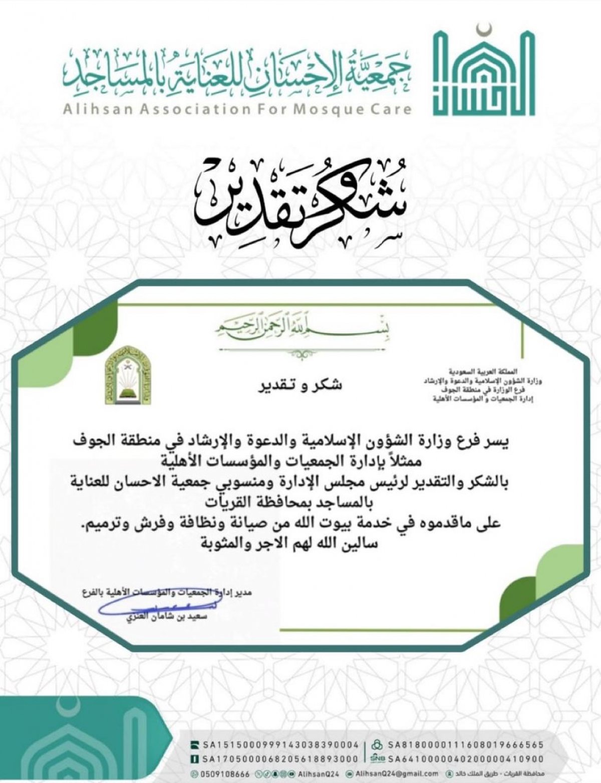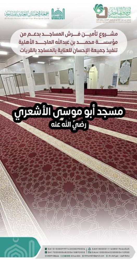 جمعية أهلية تعنى بالمساجد وتعمل على تلبية احتياجها لخلق بيئة مريحة ملائمة للمصلين
